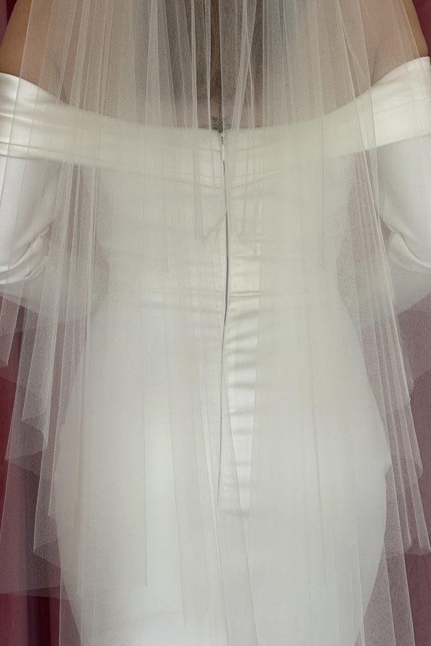 Available in a range of non-bridal colours for the bold and non-traditional, or keep it classic, the choice is entirely yours. The model wears a 1.3m length, but all veil lengths are fully customisable and available to try on at our Auckland studio.